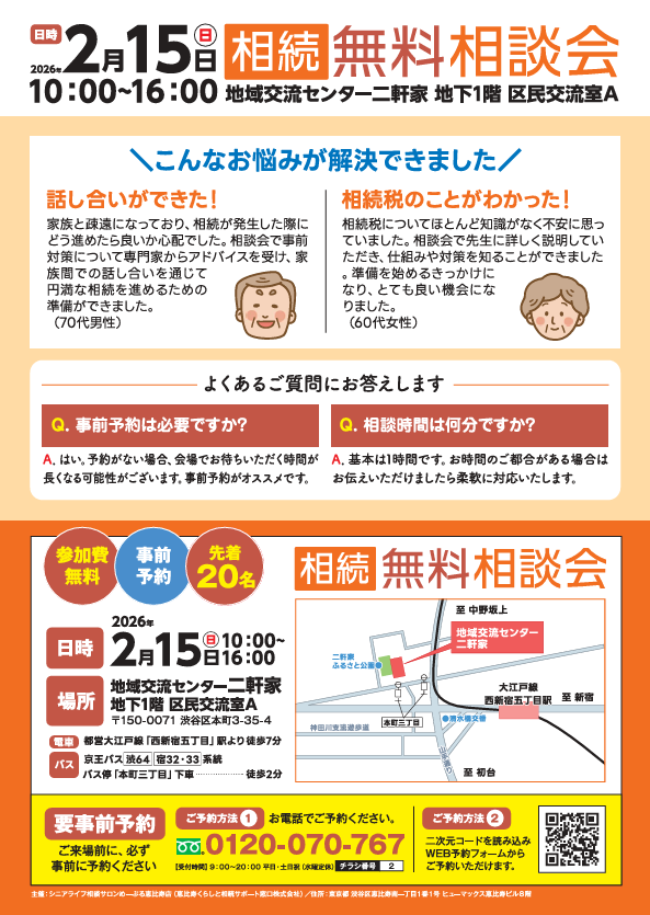 (事前予約が必要なため、参加ご希望の方は0120-070-767にお電話ください)